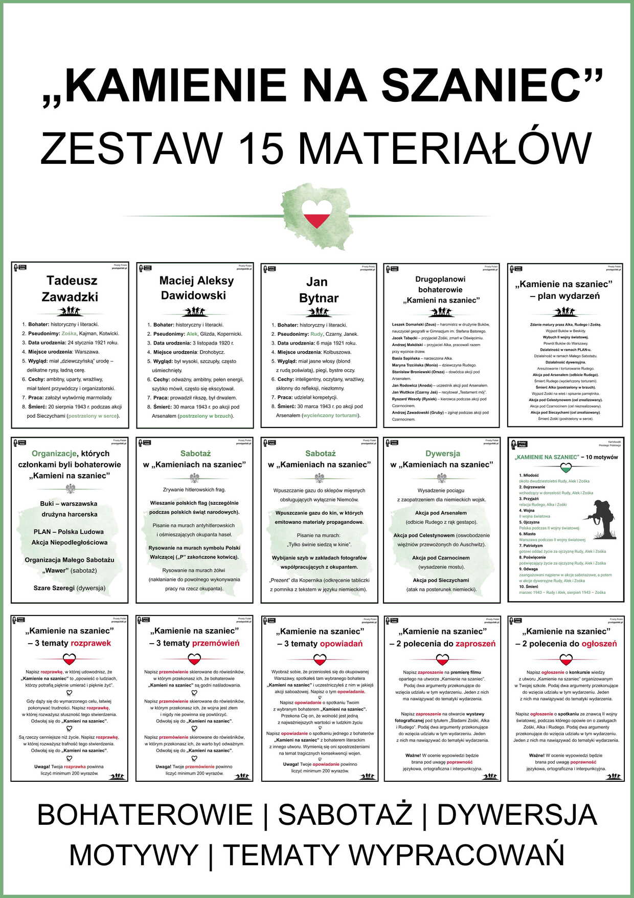 Zestaw 15 notatek graficznych z „Kamieni na szaniec”